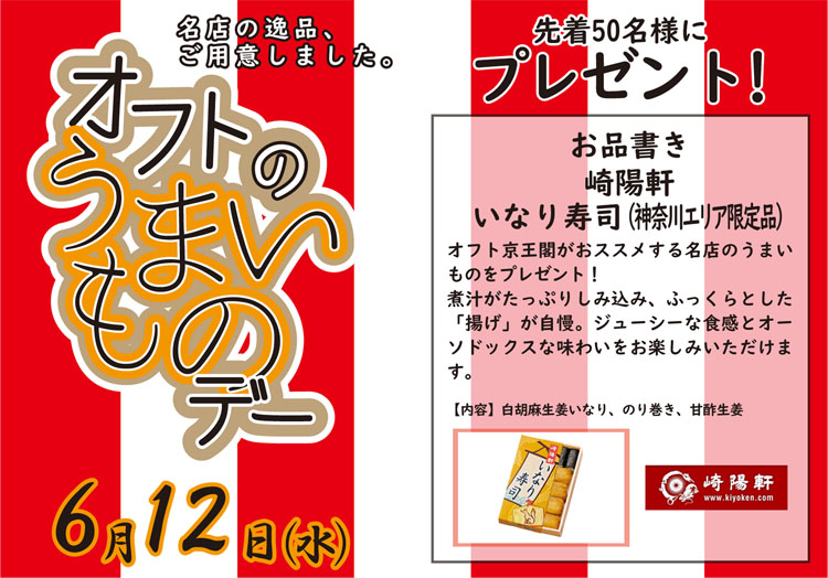 毎度ご来場いただきありがとうございます。 6/12(水)にオフト京王閣の恒例イベント「オフトのうまいものデー」を開催いたします。