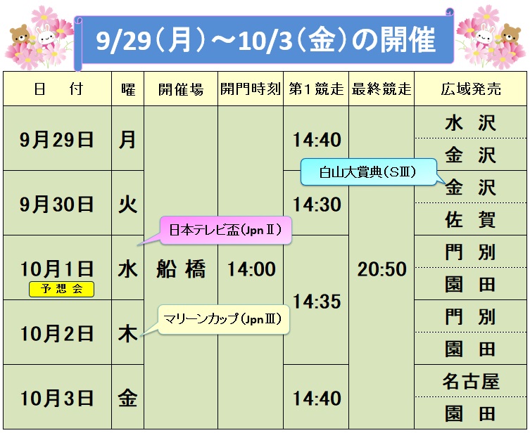 2025/09/25【9/29~10/3】 船橋競馬(ナイター)