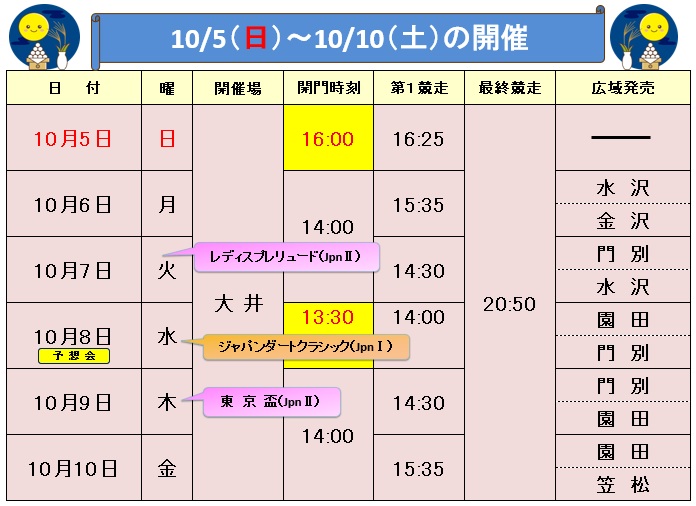 2025/10/03【10/5~10/10】 大井競馬(ナイター)