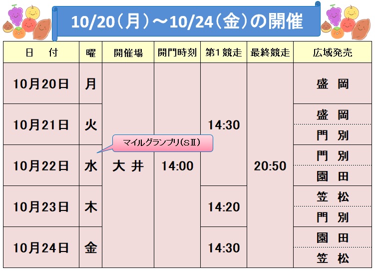 2025/10/16【10/20~10/24】 大井競馬(ナイター)
