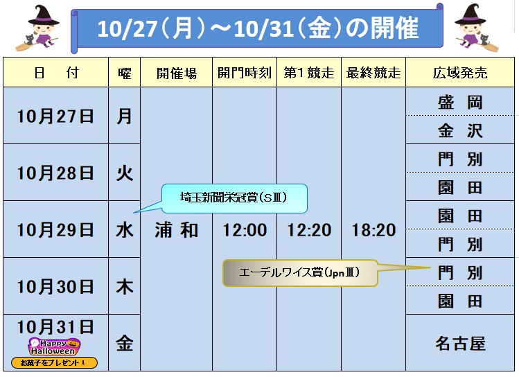 2025/10/23【10/27~10/31】 浦和競馬(薄暮)
