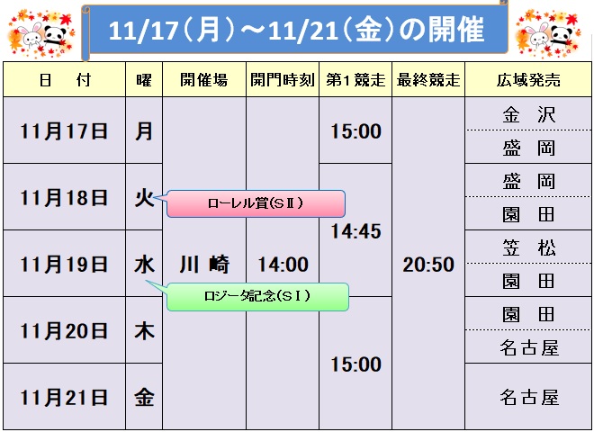 2025/11/13【11/17~11/21】 川崎競馬(ナイター)