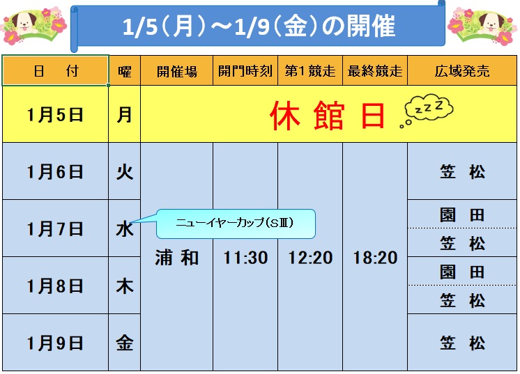 2026/01/02【1/6~1/9】 浦和競馬(薄暮)