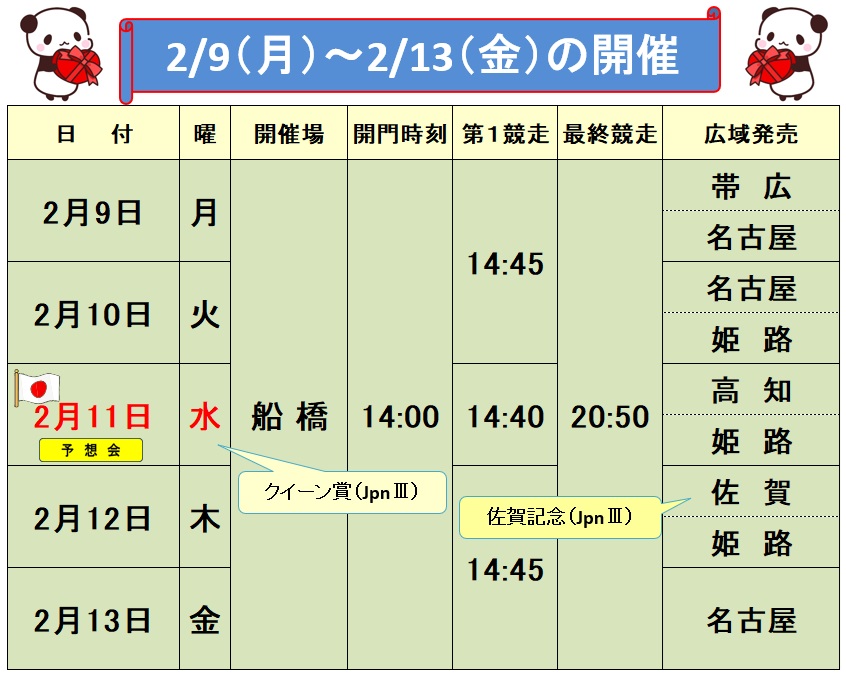 2026/02/05【2/9~2/13】 船橋競馬(ナイター)