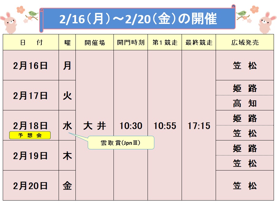 2026/02/13【2/16~2/20】 大井競馬(昼間)