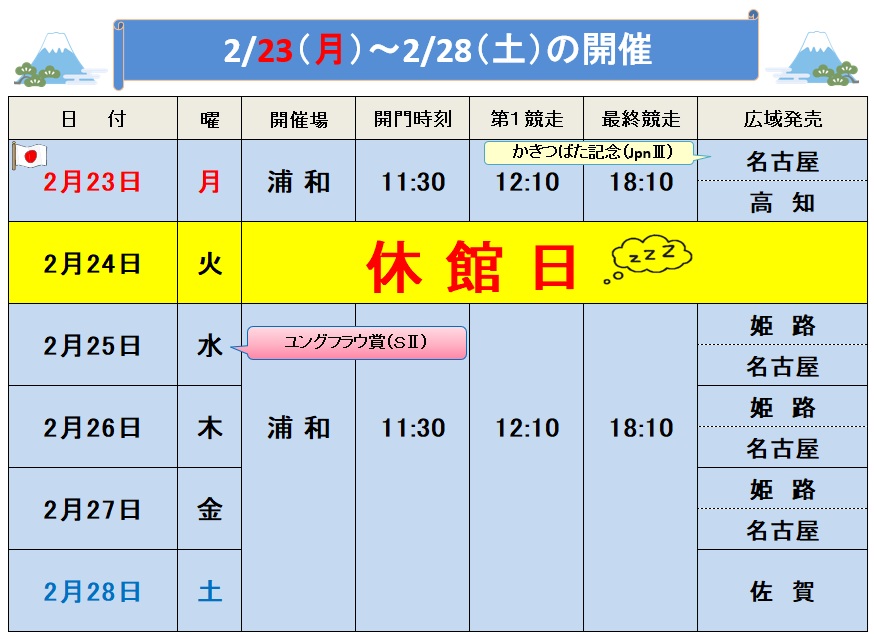 2026/02/20【2/23~2/28】 浦和競馬(薄暮)