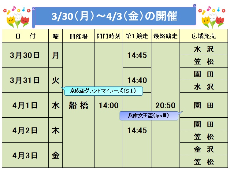 2026/03/27【3/30~4/3】 船橋競馬(ナイター)