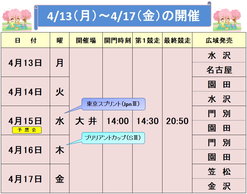 2026/04/09【4/13~4/17】 大井競馬(ナイター)